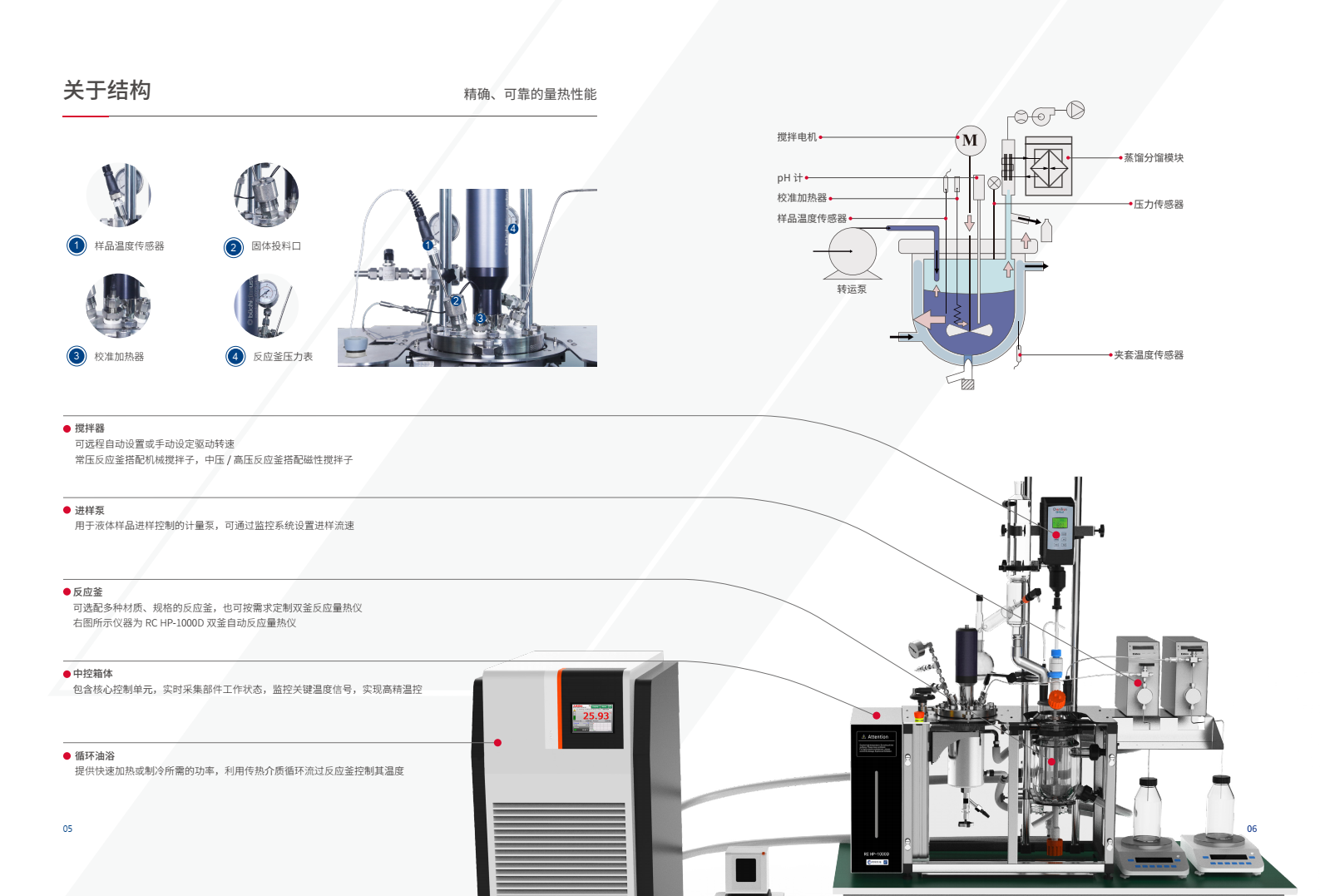用戶可實(shí)時(shí)測(cè)量反應(yīng)釜內(nèi)樣品的反應(yīng)放熱熱流,以獲取反應(yīng)物的總放熱量、比放熱量、實(shí)時(shí)轉(zhuǎn)化率和物料累積等熱行為信息,自動(dòng)標(biāo)定物料體系比熱容、傳熱系數(shù),推算目標(biāo)反應(yīng)的絕熱溫升和失控后體系能夠達(dá)到的最高溫度,據(jù)此對(duì)反應(yīng)工藝危險(xiǎn)度進(jìn)行評(píng)估,為目標(biāo)反應(yīng)的工藝優(yōu)化放大提供依據(jù)。