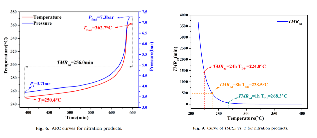 該項(xiàng)目主要研究了12種有機(jī)溶劑下間二甲苯硝化反應(yīng)的放熱行為和選擇性。其中仰儀科技絕熱加速量熱儀TAC-500A被應(yīng)用于對(duì)硝化產(chǎn)物的熱失控測(cè)試,以及絕熱條件下硝化產(chǎn)物的熱動(dòng)力學(xué)分析,為開發(fā)高效、安全的硝化策略提供關(guān)鍵數(shù)據(jù)支持。