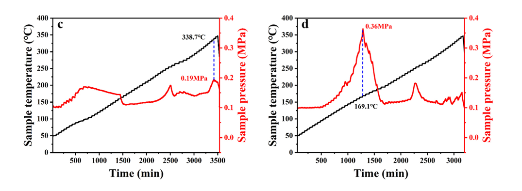2.使用絕熱加速量熱儀對兩組反應條件進行了熱行為評估,結果顯示均未出現明顯的放熱行為。但在169.1°C時,原始方法的反應條件出現了明顯的壓力升高(0.36 Mpa)情況。