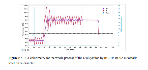 本研究借助仰儀科技RC HP-1000A自動(dòng)反應(yīng)量熱儀等設(shè)備,重點(diǎn)針對GL-V9合成過程中的Elbs氧化與O-烷基化兩個(gè)關(guān)鍵步驟開展安全評估,有效解決了這兩個(gè)步驟的熱穩(wěn)定性驗(yàn)證、潛在危害識(shí)別及風(fēng)險(xiǎn)管控問題,保障了整個(gè)合成路線的安全性與可放大性。